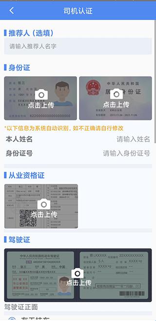 4、下一步,需要司机认证,需要准备以下材料:身份证、驾驶证、行驶证、车辆照片、危化品从业资格证、危化品罐检报告、道路运输证、车辆使用权协议。