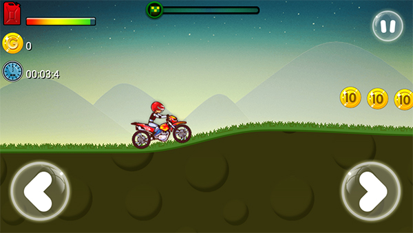 2、山地越野摩托车最新版游戏玩家在这里你要收集金币和油桶来加油。