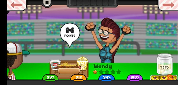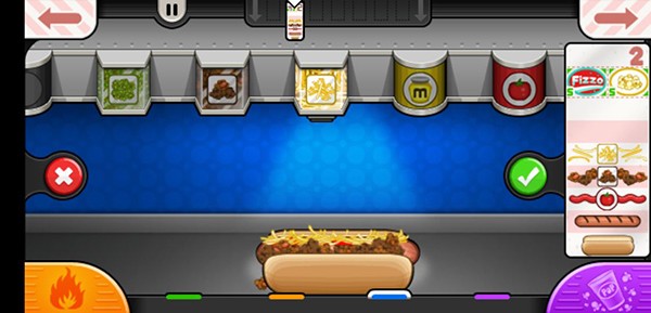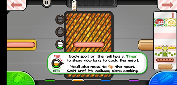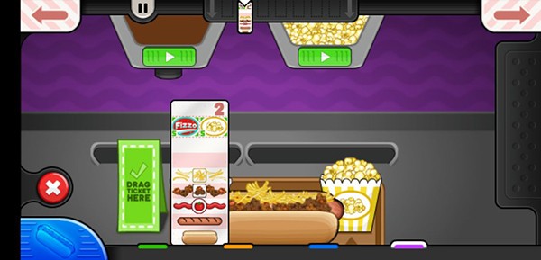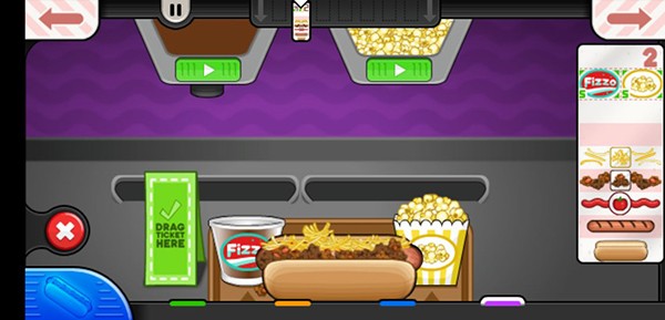 移动各种美味的调料添加到您的热狗,跳转弹出美味的饮料和弹出一些新鲜爆米花完成这顿丰盛的热狗快餐。前往订餐站给饥饿的顾客写好菜单,然后回到厨房进行热狗制作烹饪,翻转多汁的热狗和香肠。