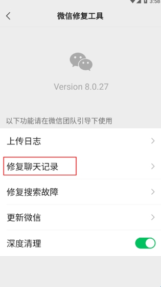 点击”修复聊天记录“即可