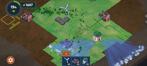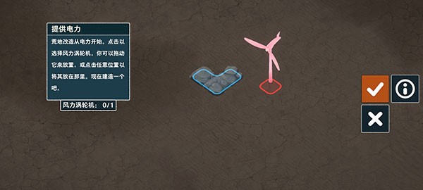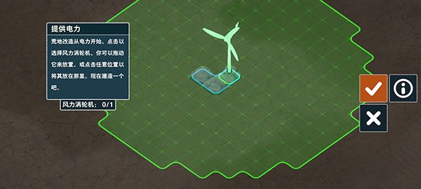 6、按照提示,放置风车、电力机以及灌溉装置...每次放置都会让你的土地发生改变,直到最后重现生机!