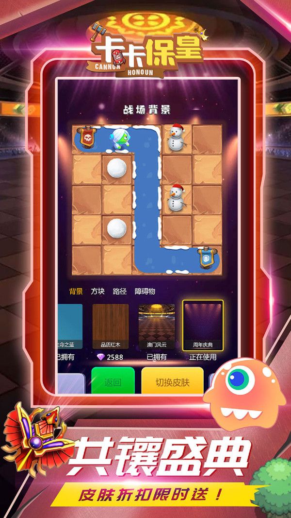 3、卡卡保皇是一款益智策略塔防游戏。点击即玩,一秒加载!内含数十种基础炮台,十余种特殊炮台,5000多门关卡,大量随机地图;