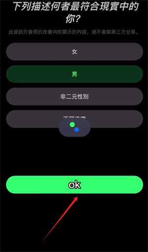 6、最后选择好你的性别,点击按钮即可完成账号注册。