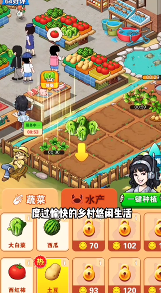 1、游戏内提供多样化的蔬菜与水果种类,玩家可随进度不断解锁,通过合理布局与策略提升作物品质,获得更高收益。