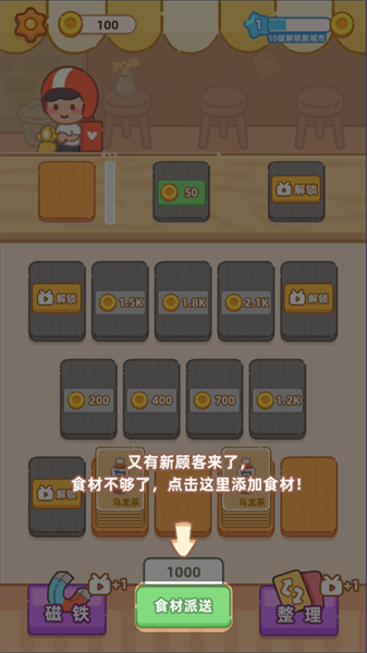 3、画面下方的磁铁以及整理功能可以提供很大的帮助,提升奶茶制作效率。