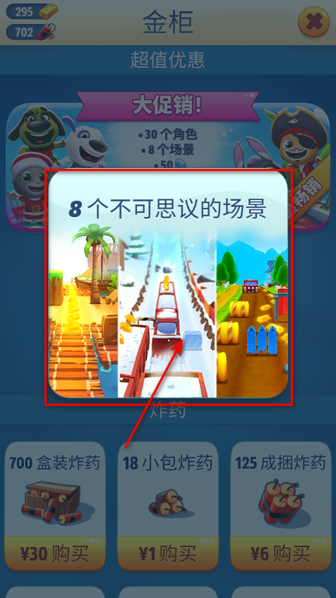特别角色:在特别角色的帮助下,玩家可以跑得更快,玩酷炫小花招!安吉拉公主、鲨鱼汉克狗和超级汤姆猫等待玩家的营救!