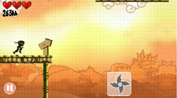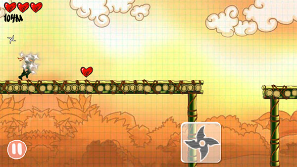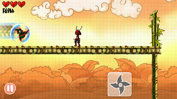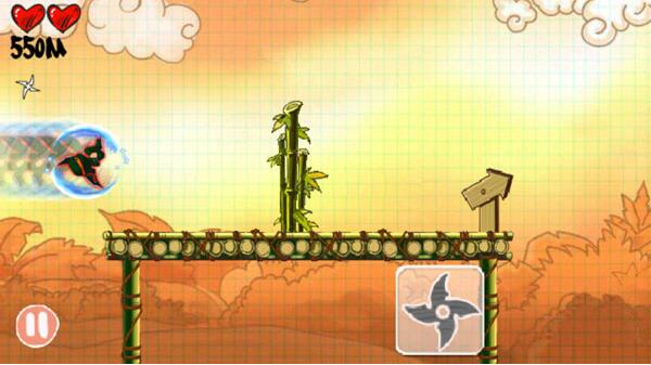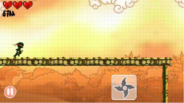 相信对于喜欢玩忍者系列手游的小伙伴来说,这款忍者突袭你一定感兴趣,这是一款非常有趣且具挑战性的冒险跑酷类游戏,游戏以简笔卡通的风格,清爽简单的游戏画面,可爱的忍者人物角色形象,以及独特的打击音效为玩家们带来全新不一样的游戏体验。在游戏中,玩家们主要操控游戏内的忍者前往各种不同的关卡之中,完成各种艰难的任务跑酷挑战,最终到达终点。同时,游戏内还有着非常刺激的跑酷玩法,在跑酷的过程中你需要通过手中的发镖斩杀各种各样的敌人,爽快的操作体验,带给你前所未有的战斗体验。而且,游戏整体的操作方法极其简单,玩家将通过点击屏幕控制忍者的奔跑、跳跃、发镖等动作,点击屏幕是跳跃,点击两次就是二段跳,点击飞镖可以发射飞镖,简单易上手。此外,在跑酷过程中还可以收集路边的心形和风车形工具,红心能够补充体力,风车能够为你加速,游戏结束后还可以查看战绩并获取相应的成就。