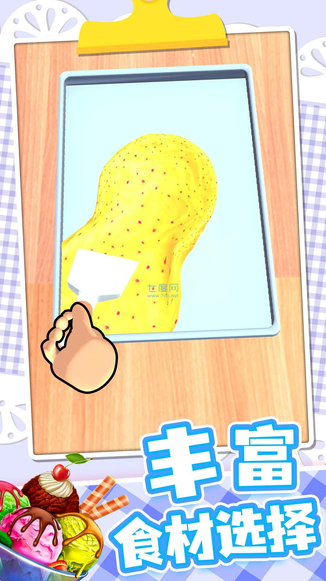 2、玩家可以模拟炒冰、卷冰淇淋、撒配料等操作,还有多种配料、糖浆可以选择,让玩家可以制作出专属的甜品!