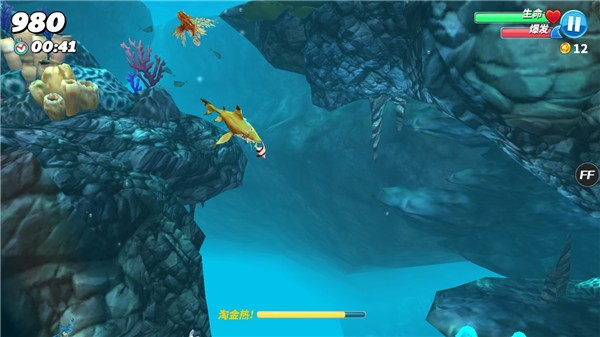玩家朋友们不要想着吃大鱼得高分,小鱼分数低就不去捕捉。鲨鱼的饥饿程度是和跑动的距离有关的,如果不及时的进食,是很容易饿死的。所以不要挑食,大小都好。