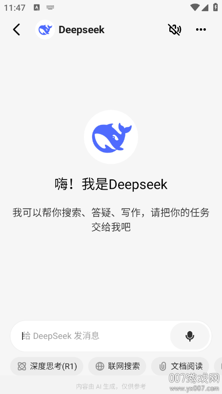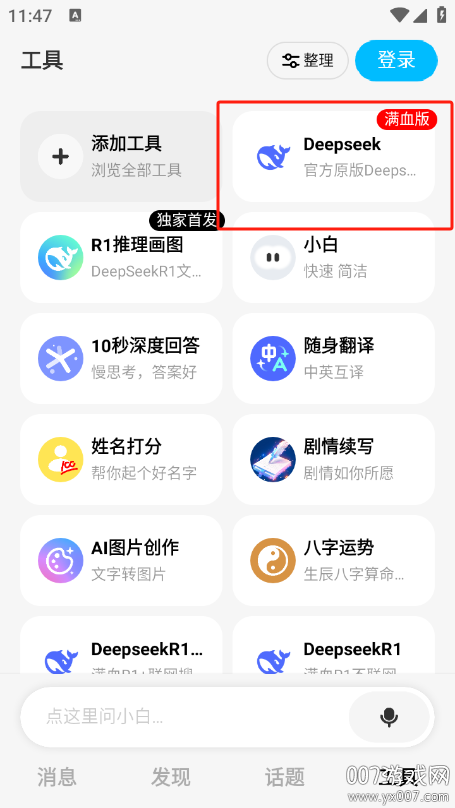 1、在007游戏网下载安装问小白deepseek满血版进入