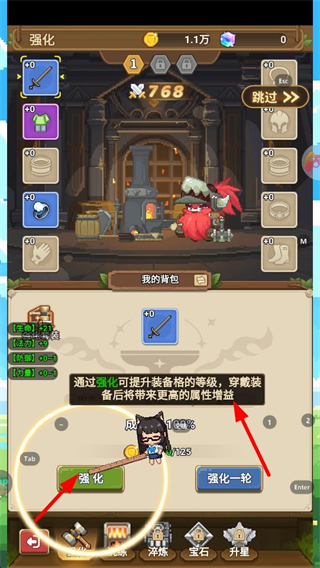 3、强化装备,提升装备的等级和属性,增强角色的战力,为对抗冒险大陆更强大的怪物提供助力。