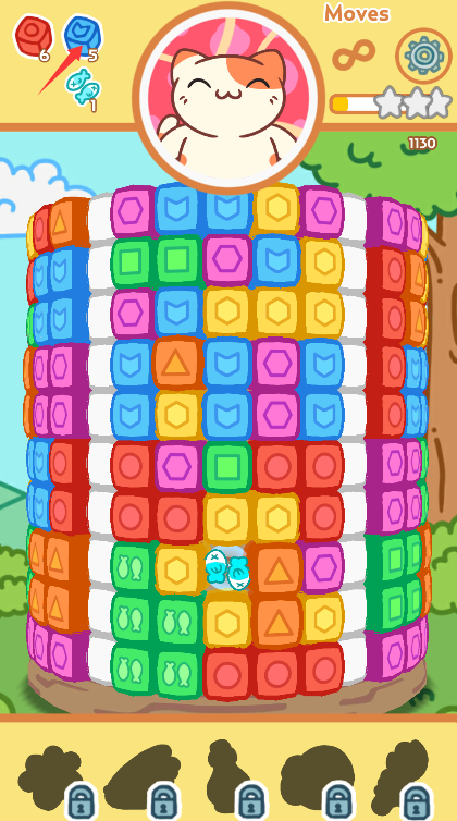 3、每次消除方块的操作都计为一步,游戏有目标分数设定,你需要朝着这个目标分数不断努力。
