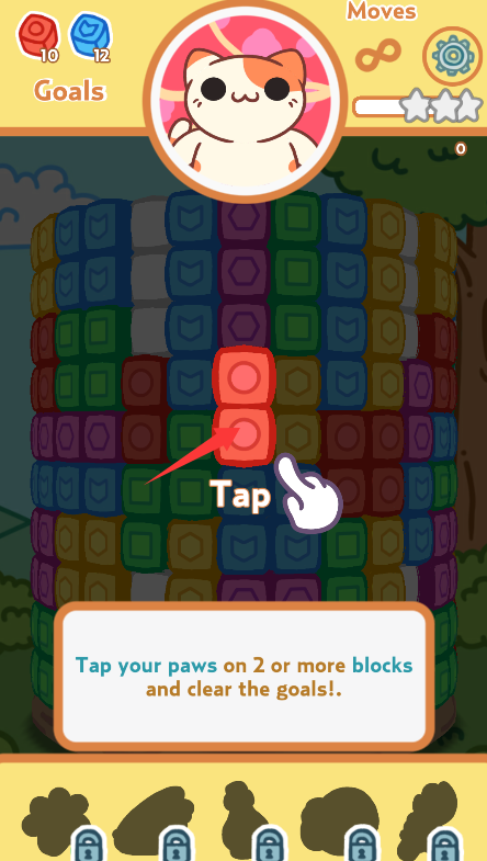 1、按照游戏给出的提示,点击两个及以上颜色相同的方块,使它们相互消除。
