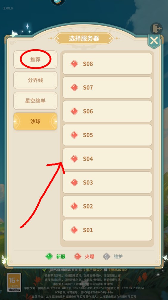 2、然后发现这些服务器都是以数字命名的,没啥好选,而且都是火爆,那就直接在推荐里随便找个就可以了。
