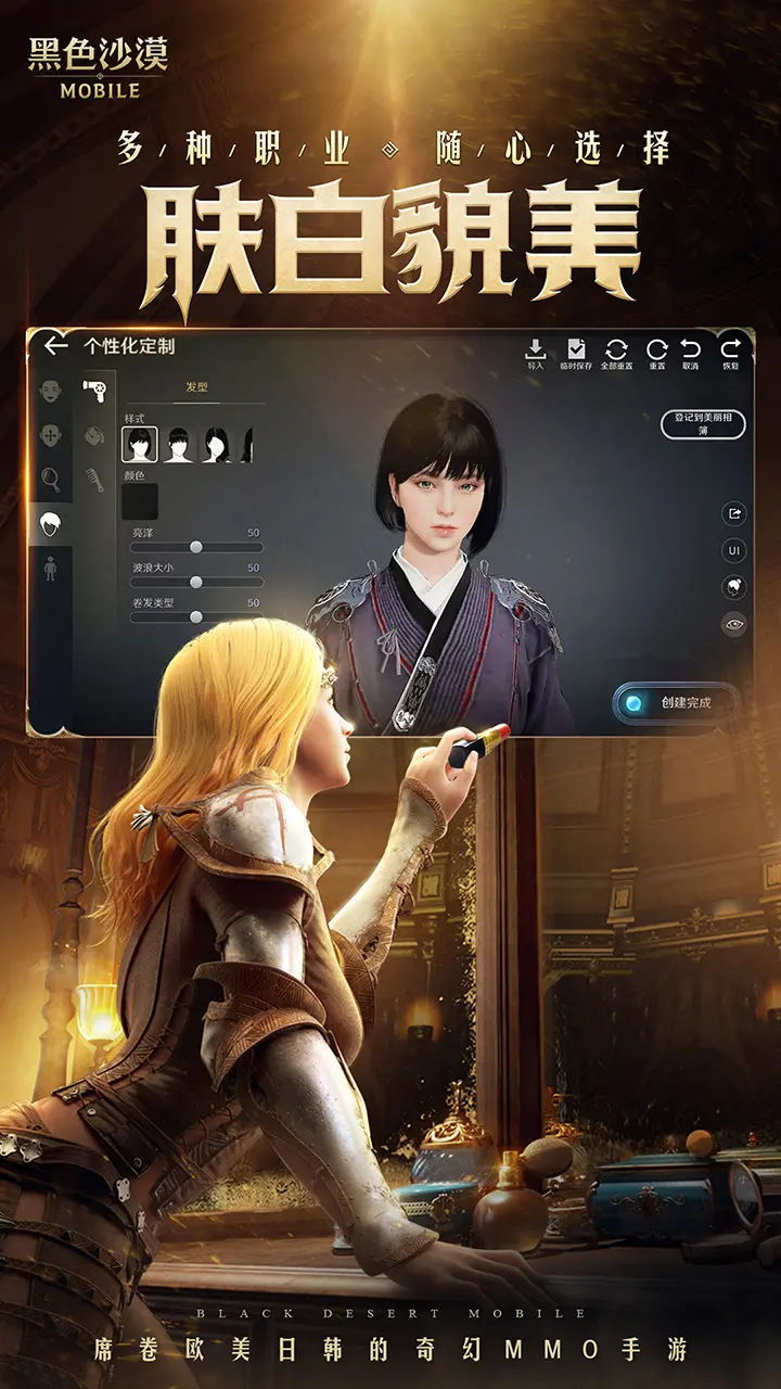 1、玩家可以在黑色沙漠手游中自由创建自己的角色外观。