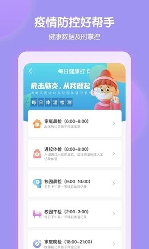 2、将宝宝在打卡签到、人脸识别签到的照片,实时推送给家长,全方位保障幼儿安全。
