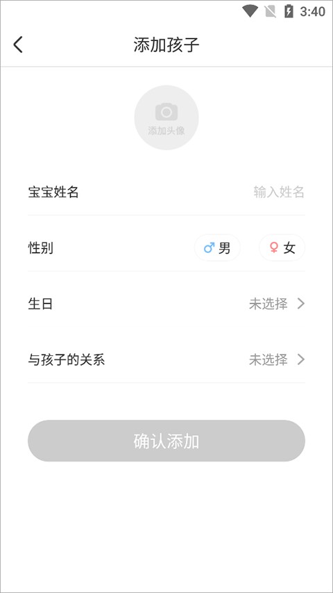 4、最后输入孩子信息后,点击确认添加。
