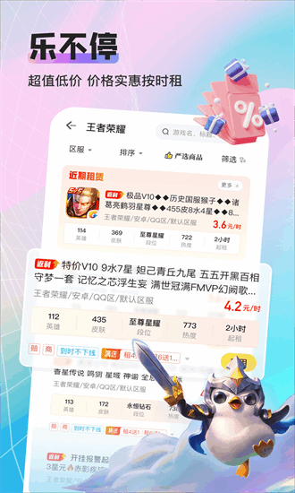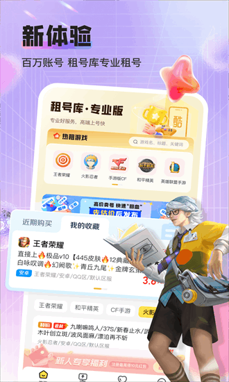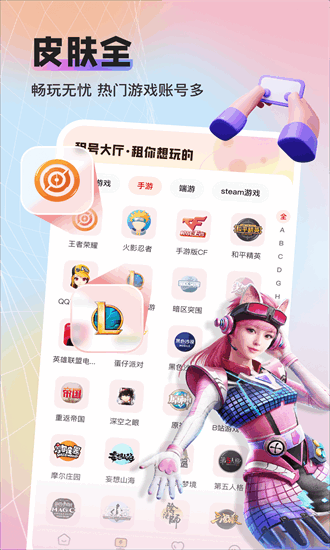 1、游戏覆盖全品类:提供当下热门游戏(如王者荣耀、英雄联盟、和平精英等)和火爆新游的账号出租。