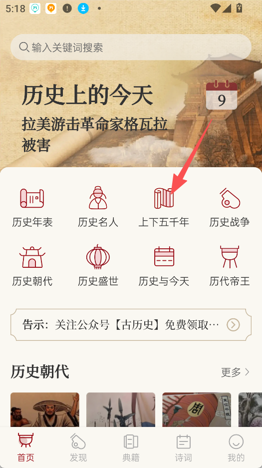 2、上下五千年板块内容丰富,从远古时代到各朝代典故都有涉及,展现中华历史的漫长与多彩。