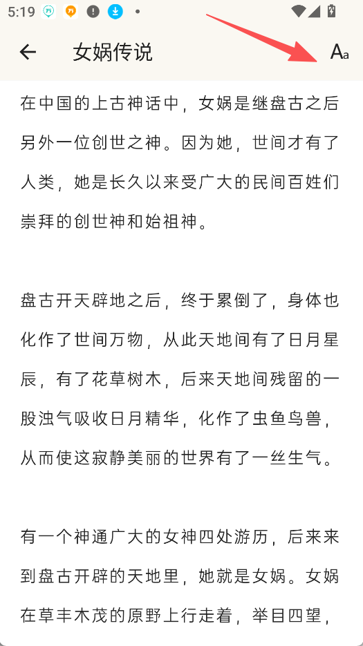 3、进入具体内容页面,可查看详细文字介绍,还能点击Aa调整文字显示。