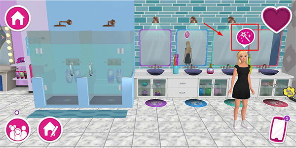 1、进入芭比梦想豪宅游戏,点击芭比头上图标,即可进入芭比换装页面