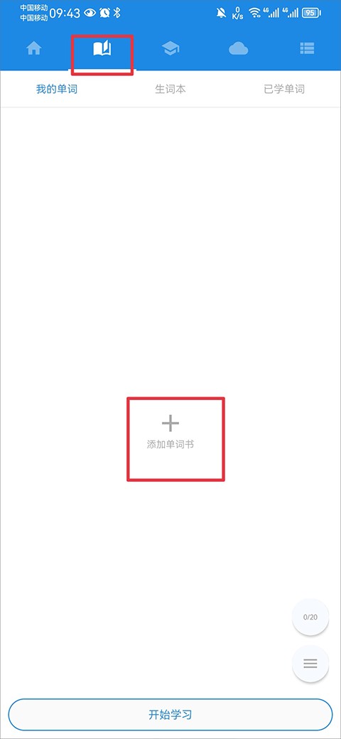 3、在单词界面可以添加单词书学习