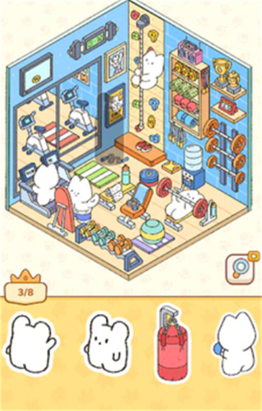 1、简单清新的游戏画风,温馨繁杂的房间设计。