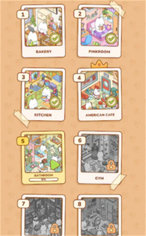 4、装饰一个房间,在完美的位置贴上可爱的贴纸,并观看顽皮的动画猫咪将每个场景带入生活。