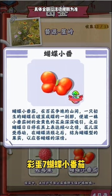 3-2关,在枯树下面点击红色的东西,获得蝴蝶小番茄。