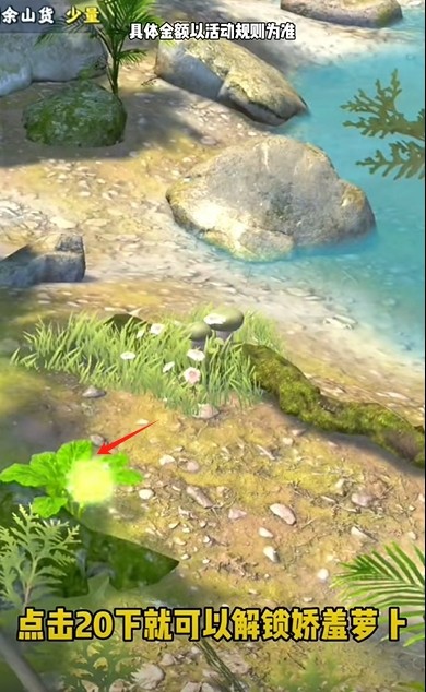 进入1-4关卡,找到这颗绿色的叶子,点击20下就可以解锁娇羞萝卜。