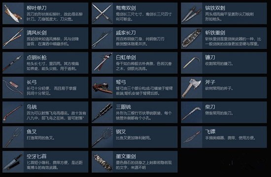 武侠乂远程武器分为长弓,弩弓,飞刀,眼铳和鸟铳五种。