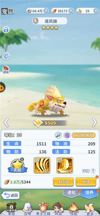 (4)升星:消耗其他宠物作为升星材料,给自己的主战宠升星,大幅提宠属性。