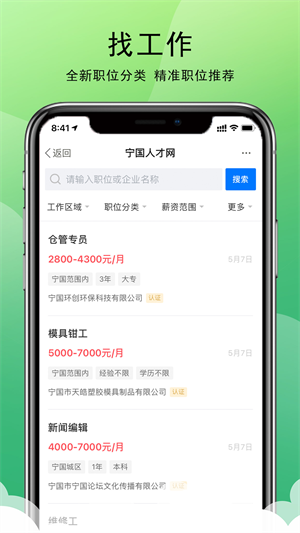 2、宁国人才网app下载安装最新版招人才、找工作,只需宁国人才网。已有5,000多家企业用户和40,000多个求职者。