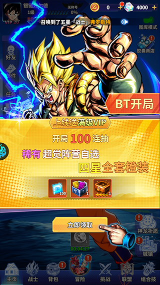 2、然后进入游戏就赠送满级VIP和100抽等新手豪礼;