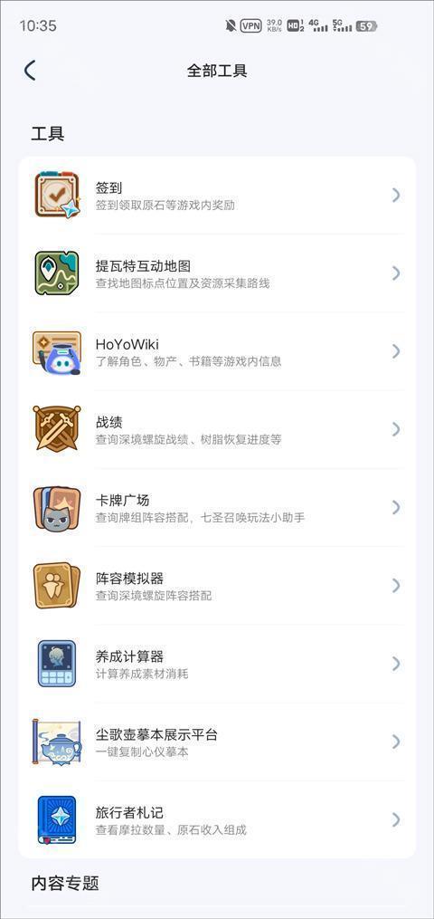 5、同时软件内还有很多实用的游戏工具,如签到、提瓦特互动地图、养成计算器等;
