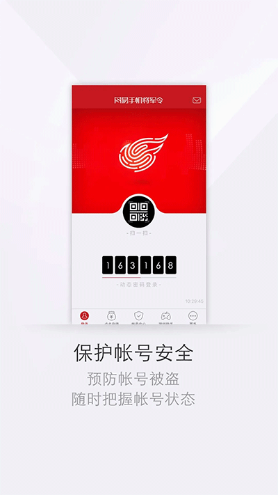 网易将军令手机版下载官网下载是一款专为网易游戏玩家打造的游戏账号安全保护国家,可以帮助玩家保护和管理自己的游戏账号,锁定账号登录,可以查询游戏攻略,游戏论坛交流,提供全方位的游戏工作助手,支持二维码登录,动态码登录,一键下线游戏账号、更改密码等,有需要的朋友不要错过了。