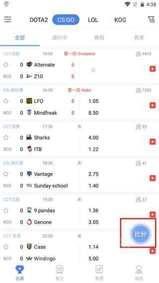 5、点击蓝色的图标,可以进行一个比分与指数的切换