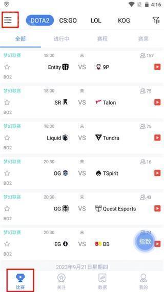 1、在本站下载安装后,进入软件“比赛”页面,点击左上角的“设置”按钮,可以进行推送和弹窗设置