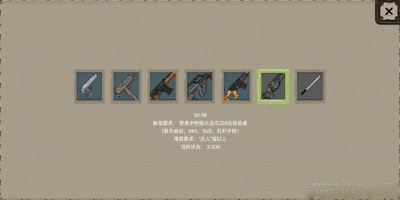 8、主武器:武器种类繁多,我讲讲个人觉得比较实用的武器。ak系列的武器都挺不错,我个人尤为喜爱的一把枪叫辛莫甘娜步枪,这把枪最高伤害能超过100,我常常能爆头直接击毙匪徒。不过,这把枪有个弊端,瞄准所需时间较长。an94也挺好,是三连发的。gouza同样不错,在军事基地会刷新,我捡到过好几把,只是子弹不太够用。至于冲锋枪,我个人感觉不太给力,威力偏小。剩下几把需要解锁的枪,性能都相当出色。