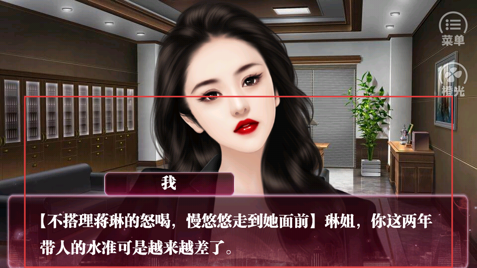 2、场景发生转换,到了剧组的化妆间,先是新人丰诺和整容婊杨清清两个人谈论头条,接着晴诗就进场,杨清清不明是非就乱相信新闻,为晴诗不值,这个时候,你恰巧在门外,你是选择“进去”还是“再等等”两种选择,可以说不同的惊喜等着你。我选择了“再等等”,想着要再听一下这个事件的发展到底会怎么样。然后又是晴诗在装样子,又是一阵纠纷,剧情发展你就直接冲进去霸道嘲讽“女配”,整容婊被你吓到了,随后你和晴诗走开,又是一顿扯皮,你接到了“奈生”,也就是你的经纪人的电话,这个人很重要,是可以攻略的。