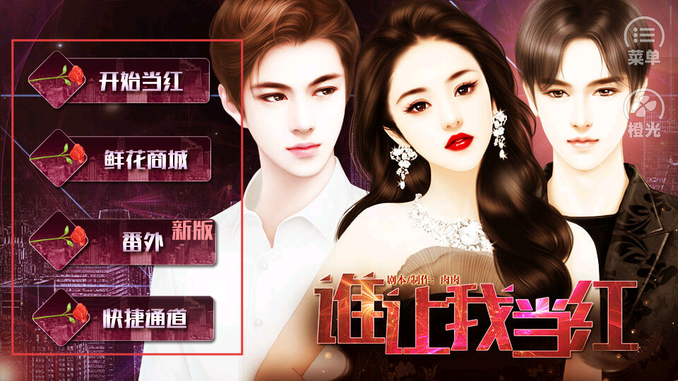 1、进入游戏,可选择开始当红、鲜花商城、番外、快捷通道等选项,开启演艺相关的剧情体验。