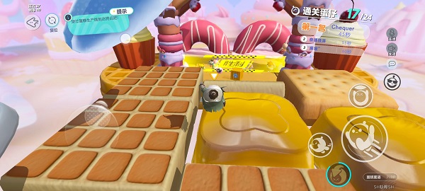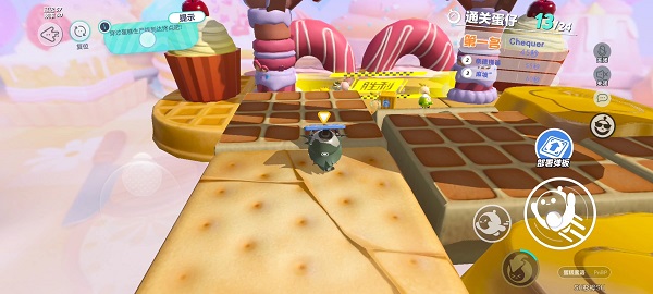 1、旁边的饼干可以踩,但撞击三次后会消失,同时每隔一段时间会撤掉一圈饼干。饼干撤完开始撤地板