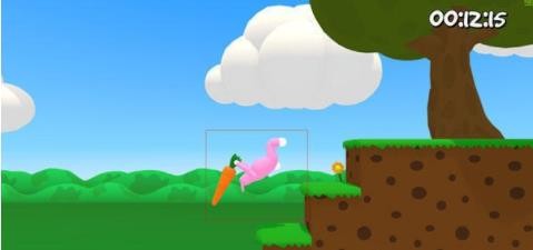 2、然后让自己的图纸滚到目标位置,然后按下键,这就是抓取键,只要玩家的兔子抓的是萝卜的根部或尾部,你就能把这个萝卜抓起来,然后一直按住下就能把萝卜抓在手里,然后随意翻滚都没有任何问题。