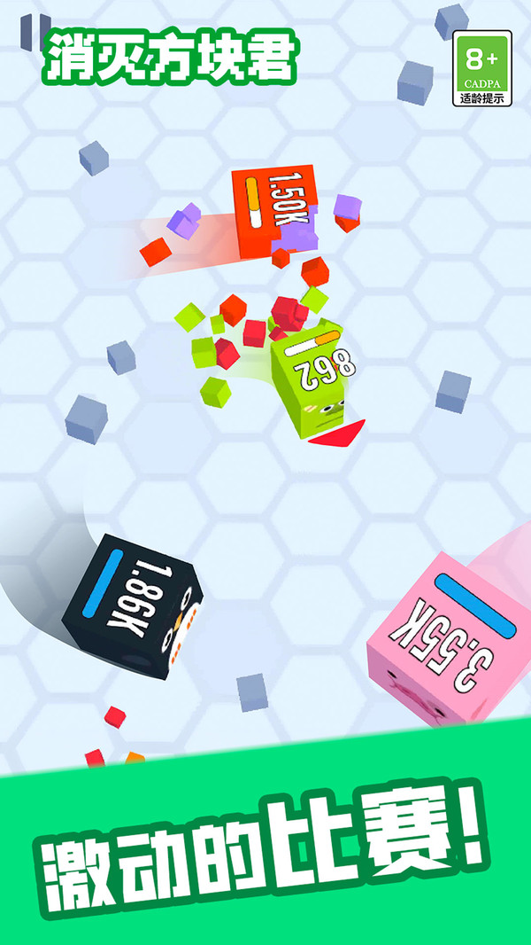 3.带给玩家放松和减压的游戏体验,玩家可以体验不断击打和消除方块带来的非常放松的感觉。