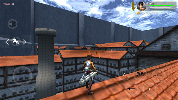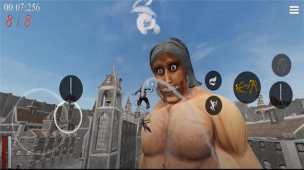 2、长按绳索就能不断的往那个方向飞行,飞到巨人的后颈位置。