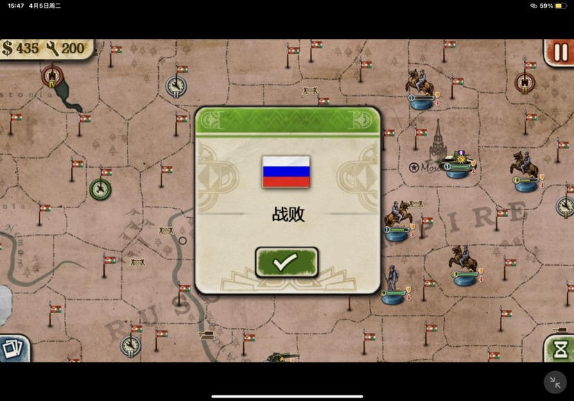 元帅挂上,开经济、等级、攻击防护勋章才比较容易过。不开的话很容易失误掉,开局沙俄暴兵加各种暴击和攻击等级防御压制,还是比较难的。