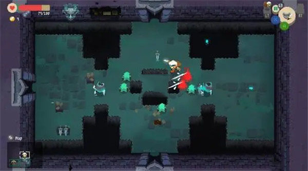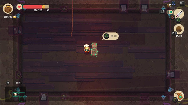 4、击杀地牢的魔物或者打开箱子会掉落物品,走上去会自动收集,掉到深远的物品就无法获取了。右侧显示背包的容量,背包满了就无法再捡东西了。