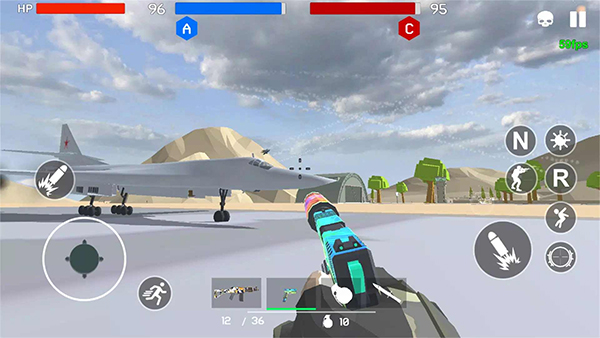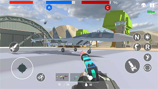 6、完成部署后,便正式进入游戏战斗环节。游戏界面通过轮盘来操控角色行走方向,界面上还有两个子弹按钮,玩家在瞄准敌人后,可点击按钮进行射击。