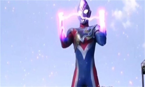 4、超酷的变身音效一出,耀眼的光芒一闪,霸气的德凯奥特曼形象就出来啦。