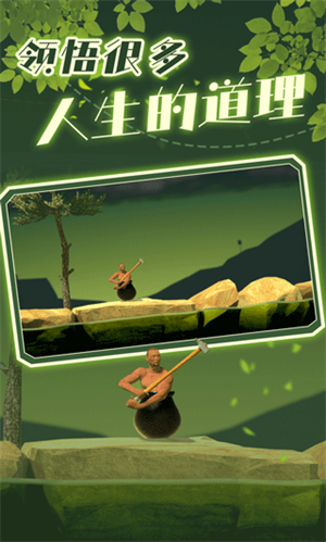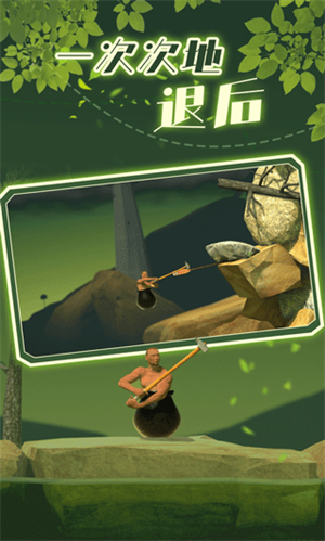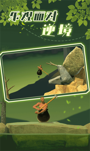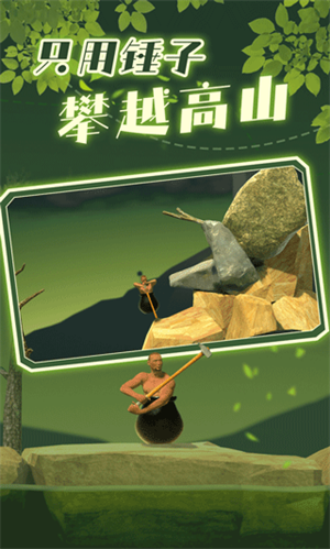 1、打开getting over it手游,点击屏幕开始,进入到游戏之后,玩家将扮演一个装在罐子里的人,你只有一个榔头。你需要滑动屏幕来控制榔头的方向,比如将榔头朝下。